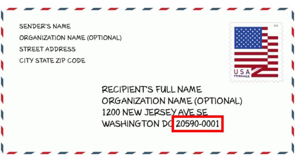 Ejemplo de una carta con el código postal de los Estados Unidos